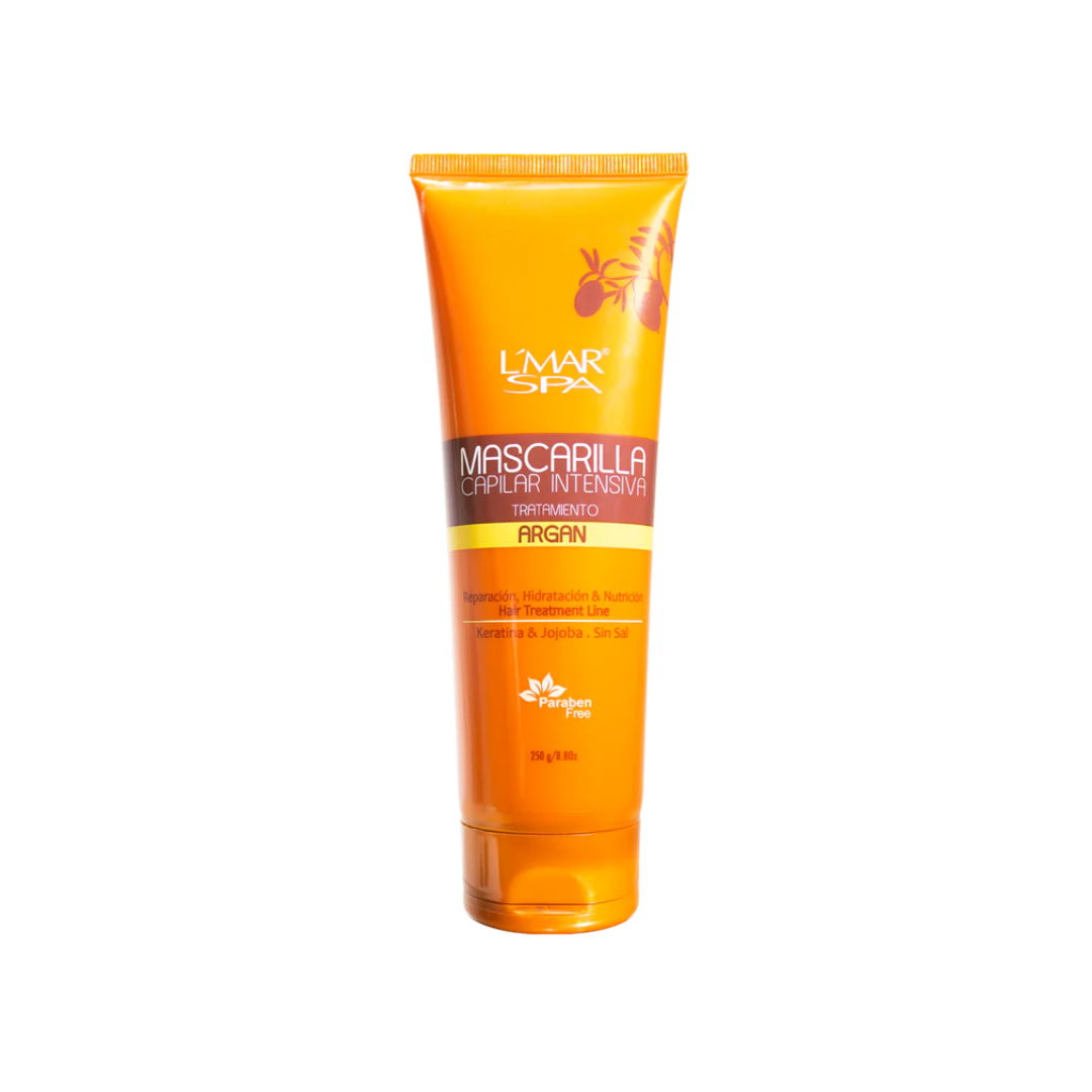 Mascarilla ultra cremosa, hidratante intensiva, extra acondicionadora enriquecida con Argán 100% puro SIN SAL y LIBRE DE PARABENOS, repara el cabello seco, maltratado y dañado nutriendo profundamente devolviendo la vida al cabello dejándolo brillante, suave, sedoso, saludable y manejable.